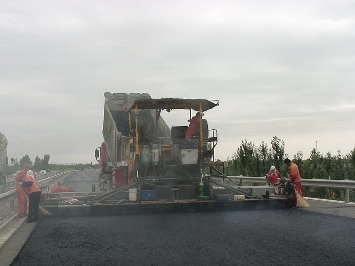 G30线 桥头跳车处治现场(摊铺)