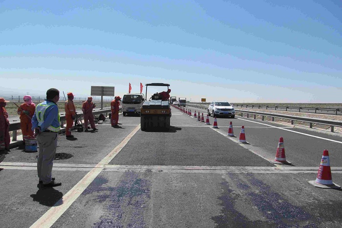 日常养护“零”隐患。紧抓“创建平安公路桥涵养护专项整治”百日竞赛活动契机,精心组织,统筹部署,日常养护实现了常态化。全年清扫路面17786公里,整理路容路貌836.1公里,及时处治路面病害,加强质量控制,共处治路面病害30542.8m2。协调应急中心、镜铁段重点做好S215线公路水毁预防和修复保畅工作,共完成填筑路基土方74512 m3,清理泥石流7527.4 m3,增设石笼防护290米,疏通河道72340m3。同时,加强砂砾路面养护,对砂路病害及时采取铺砂、匀砂等措施进行了重点处治。结合冬季养护管养实际,备足国省干线公路防滑料、冷补料、除雪车等应急设备,除雪保畅工作安排地井然有序,共储备防滑料500吨,冷补料100吨,融雪剂80吨。