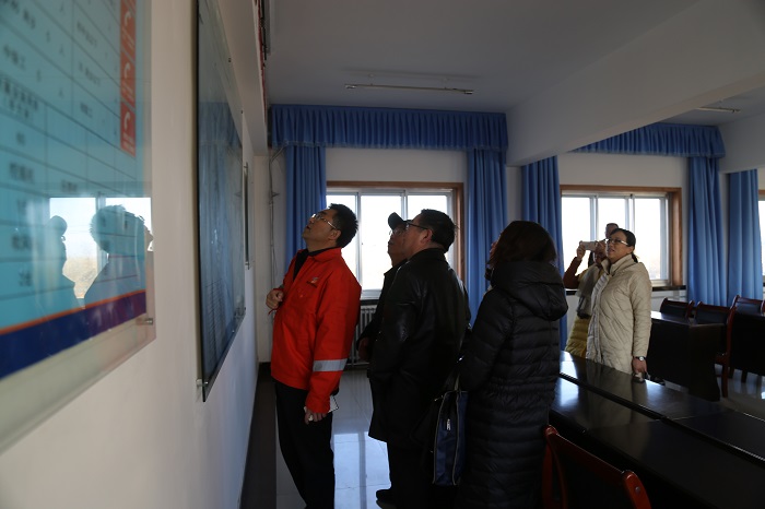 检查组首先实地观摩了嘉峪关养管站办公室、职工活动室、会议室等工作环境,查看了养管站管养线路图等,并对养管站的工作进行了解。检查组听取了养管站近年来创建工作专题汇报,特别是对以自主研发的破冰抛雪一体机为代表的一系列技术创新、设备改造、新材料运用等创新成果进行深入调研,并查阅了相关资料。