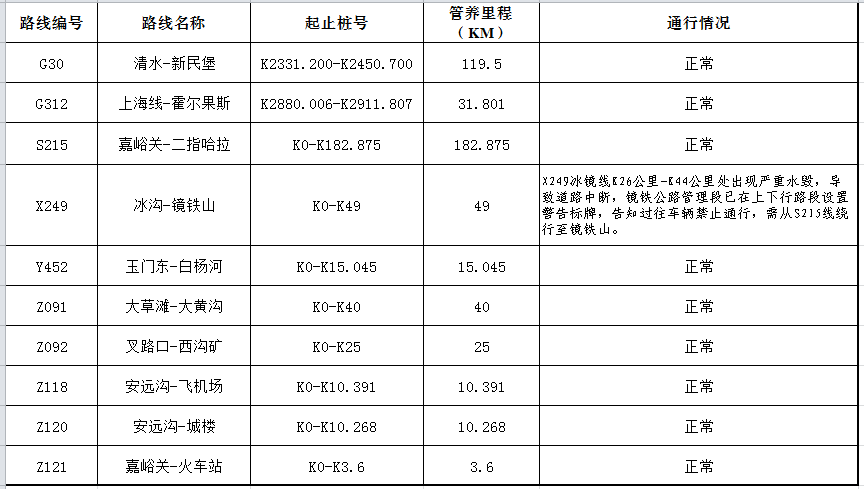 嘉峪关公路管理局管养公路路况信息(2017年12月30日)